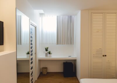 Le camere matrimoniali standard sono dotate di un’ampia finestra, di tipo vasistas, posizionata in alto, apribile, ma che non permette affaccio all’esterno.